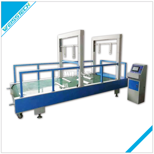 產 品 簡 介 | 皮箱行走顛簸磨耗試驗機用于附有輪子的旅行箱、旅行包、童車…的行走試驗,測試其在行走使用時皮箱輪之使用品質,通過測試里程、測試速度,以檢視皮箱輪之耐熱、破裂及損耗量,檢測輪子材料的耐磨性及箱子的整體結構有無破壞情形及變形,試驗的結果,可供作改進的參考。 |